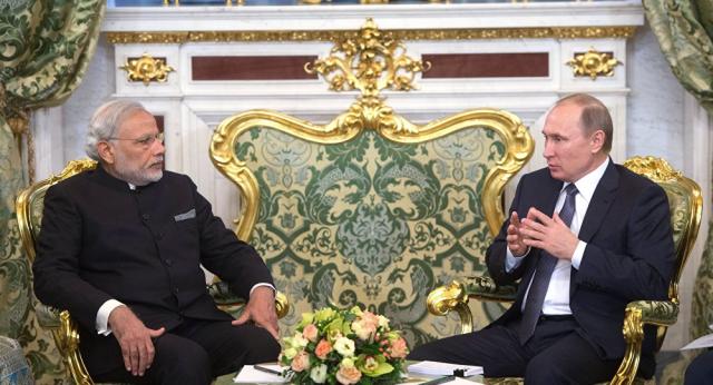 普京在克里姆林宫欢迎莫迪时说:“我们一贯并坚定发展印度和俄罗斯之间的优先战略伙伴关系。这也涉及政治领域、协调我们在国际舞台的力量问题,这还涉及经济和人文领域的互动。”