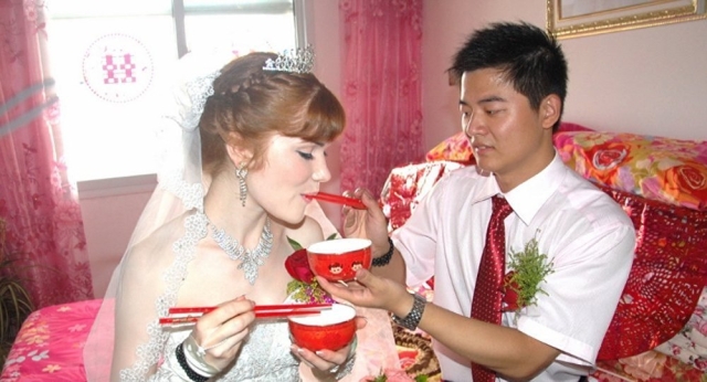 俄罗斯妻子,中国丈夫成了俄罗斯婚姻所看好的一个趋势。中国人喜欢金发女郎,为了结识这样的姑娘,甘愿给婚姻所一笔不菲的数目。我们的姑娘也不完全反对嫁给中国的有钱人。来自滨海边疆区一个小乡村的安格林娜就是其中的一位。她中学毕业后去了延吉,在那里上了一所大学。假期时去了附近的珲春,在一家旅馆找了一份工作。在这遇到了自己未来的丈夫。这对年轻夫妇的第一个孩子已经一岁半了。但不打算就生一个,这里对涉外婚姻不禁止生二胎。中国丈夫、俄罗斯妻子--近年来变得越来越多。例如,在珲春一家报社当编辑的莫罗佐娃,就是一位中国商人李卫国(音)的女友,但还不打算马上结婚。我们暂时还都没太习惯对方,她说,我不想忘记自己的根。我让李逐渐了解一些我们的风俗习惯,而他也告诉我中国人的风俗习惯。我在中国已经生活了7年,非常了解彼此间心理、文化和传统上的区别。在国内找不到俄罗斯姑娘的中国男人,就亲自来俄罗斯找伴侣。他们为此来到哈巴罗夫斯克、新西伯利亚和克拉斯诺亚尔斯克。对这些单身汉来说,从北京飞到这些地方更方便。去年一个中国单身旅游团来到了新西伯利亚。单身汉有六名,而姑娘有25个。在新西伯利亚认识后,成了两队,三对是在克拉斯诺亚尔斯克成的。对中国男人来说,俄罗斯姑娘如同礼物。他们很尊敬她们,但对他们来说重要的是,女友要自然,安静,面带微笑,不跟男人争高低。要知道,这样的旅游对中国单身汉来说并不便宜。他们要包一切费用,包括往返机票,晚饭和酒店。但是想认识的愿望仍不减。虽然中国人也说,选对象是自己选,但回到家后还是要把相片给父母看的。对他们来说,跟以前一样,得到父母的认可很重要,《俄罗斯报》写道。
