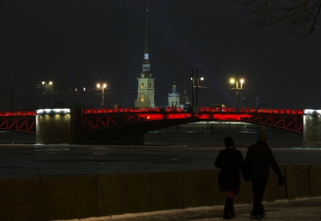 俄罗斯卫星通讯社莫斯科1月27日电据媒体报道,圣彼得堡市政府决定,为了迎接中国新年,将冬宫前涅瓦河上最著名的宫廷大桥点亮红灯。从1月27日起至2月12日,晚间的宫廷大桥将一直点亮红灯。护栏、桥孔和桥体外侧都将用红灯照射。宫廷大桥总共使用652个节能灯。根据“世界无国界” 旅游协会统计,圣彼得堡市2016年共接待了30万名中国游客,受中国游客的欢迎程度仅次于莫斯科。(来源:http://sputniknews.cn/china/201701271021716569/)