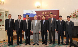 中国外交部副部长程国平与俄罗斯驻华大使杰尼索夫共同出席首发式。