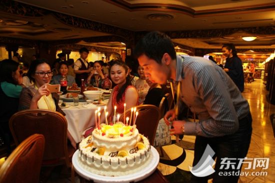 6月21日晚,在“东方明珠”号游船上,上外俄语系研究生肖山在热烈的的掌声中,为哈方师生演唱了自己拿手的俄语歌曲《我不是天使》和《海港之夜》,哈方学生则送上了合唱曲目《祝你幸福》。欢呼声在船舱内此起彼伏,将现场气氛不断推向高潮。